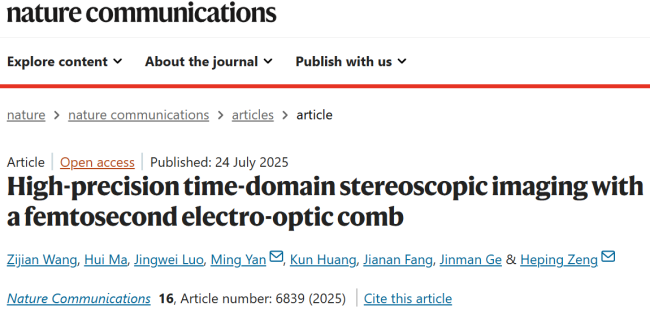 研究成果以“High-precision time-domain stereoscopic imaging with a femtosecond electro-optic comb”为题,于2025年7月24日发表于Nature Communications。