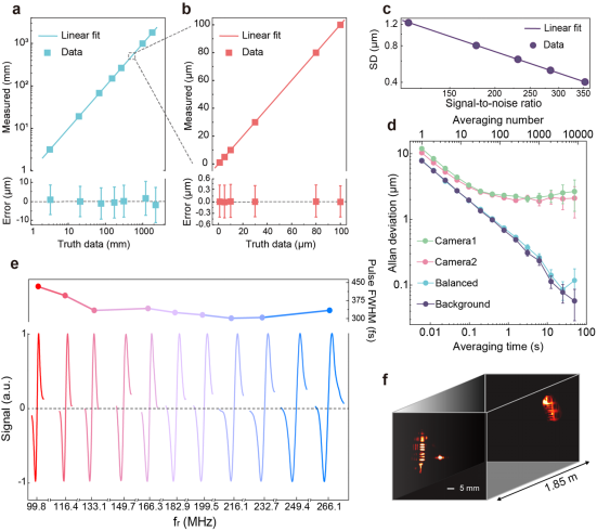 TDS技术采用飞秒电光梳与非线性光学采样技术相结合,精确控制激光脉冲的时间和频率。通过电光梳的频率调制,研究人员能够在超高精度下同步激光脉冲与时间门,确保时间差的精确测量。这一技术能够在长距离和大动态范围内保持极高的深度测量精度,达到纳米级精度。此外,采用周期性极化PPKTP晶体进行非线性光学采样,结合平衡交叉相关技术,有效抑制了光电噪声和共模噪声,进一步提高了深度测量的稳定性和准确性。